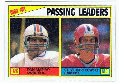 1984 Topps #202 Dan Marino/Steve Bartkowski Passing Leaders in mint condition.