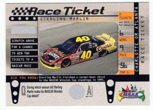 1999 Maxx Race Ticket #RT25 Sterling Marlin in mint condition.
