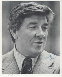 Dick Clark (Iowa Senator) autographed 8x10 photo. Photo has corner area bends. All autographs are 100% guaranteed and come with a certificate of authenticity from www.RKSportsPromotions.com.