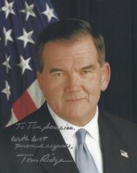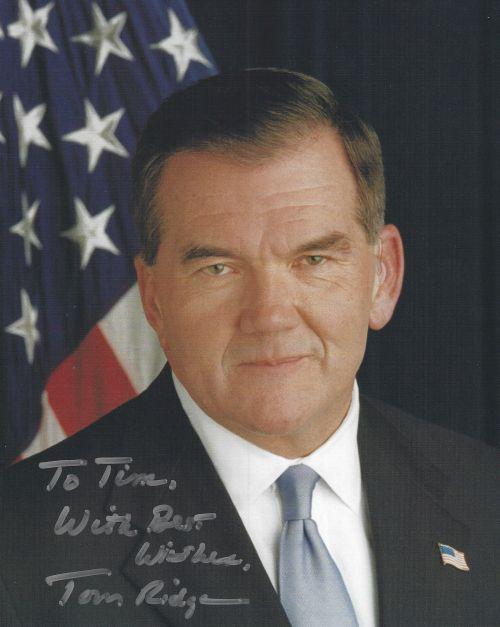 Tom Ridge (Pennsylvania Governor) autographed 8x10 photo. All autographs are 100% guaranteed and come with a certificate of authenticity from www.RKSportsPromotions.com.
