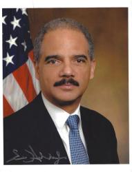 Eric Holder (U.S. Attorney General) autographed 8x10 photo. Photo is on thin paper stock and has paper clip indentions at the top. All autographs are 100% guaranteed and come with a certificate of authenticity from www.RKSportsPromotions.com.
