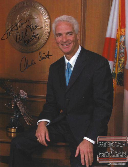 Charlie Crist (Florida Senator) autographed 8.5x11 photo. Photo has bends at the top middle area but are difficult to notice when flat. All autographs are 100% guaranteed and come with a certificate of authenticity from www.RKSportsPromotions.com.