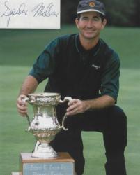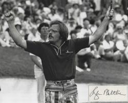 Larry Nelson (Golf) autographed cut on an 8x10 photo. The photo and signature cut have been professionally laminated together to protect and preserve their quality and condition. By placing this authentic signature cut on the photo, it has significantly increased it's value and desirability! No more looking at a boring index card or piece of paper. Photo is in MINT condition.