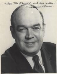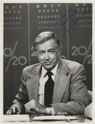 Charles Kuralt autographed 7x9 photo. Photo has two area of paper loss and staining which is difficult to notice when flat. All autographs are 100% guaranteed and come with a certificate of authenticity from www.RKSportsPromotions.com.