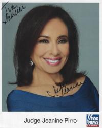 Judge Jeanine Pirro autographed 8x10 photo. Photo has bends throughout but are difficult to notice when flat. All autographs are 100% guaranteed and come with a certificate of authenticity from www.RKSportsPromotions.com.