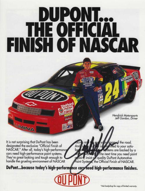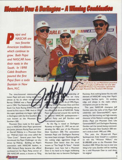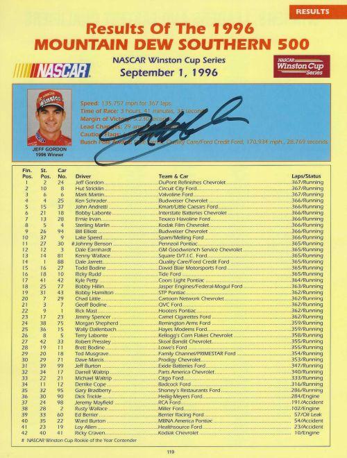 Jeff Gordon (NASCAR) autographed 8x10.5 1996 magazine page. Page has been professionally laminated to protect the signature and condition of the page. All autographs are 100% guaranteed and come with a certificate of authenticity from www.RKSportsPromotions.com.