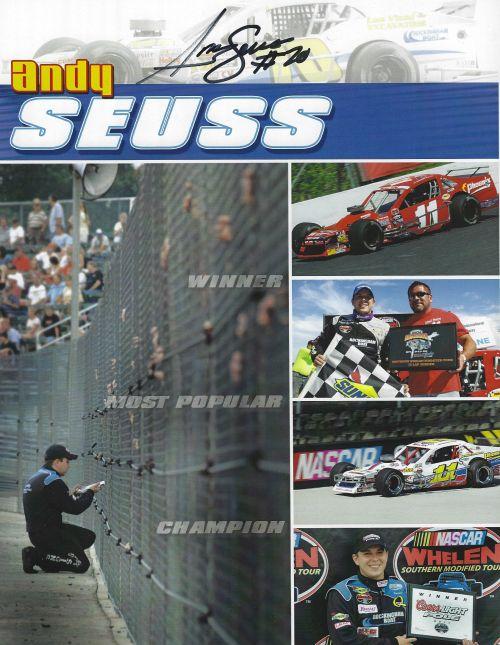 Andy Seuss (NASCAR) autographed 8.5x11 hero photo/card. All autographs are 100% guaranteed and come with a certificate of authenticity from www.RKSportsPromotions.com.