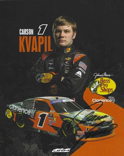 Carson Kvapil (NASCAR) autographed 8x10 hero photo/card. All autographs are 100% guaranteed and come with a certificate of authenticity from www.RKSportsPromotions.com.