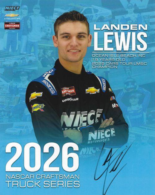 Landen Lewis (NASCAR) autographed 8x10 hero photo/card. All autographs are 100% guaranteed and come with a certificate of authenticity from www.RKSportsPromotions.com.