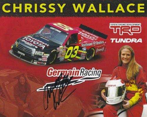 Chrissy Wallace (NASCAR) autographed 8x10 hero photo/card. All autographs are 100% guaranteed and come with a certificate of authenticity from www.RKSportsPromotions.com.