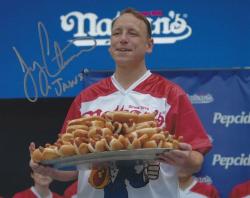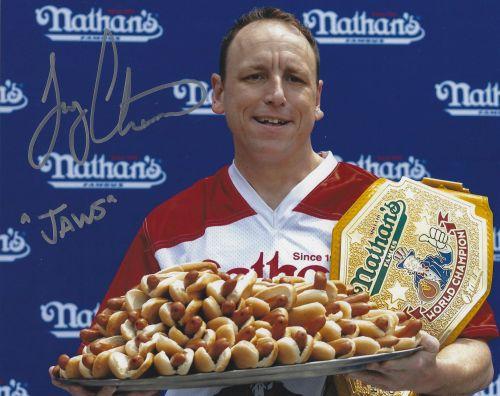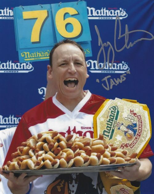 Joey Chestnut (Professional Eating Champion) autographed 8x10 photo. All autographs are 100% guaranteed and come with a certificate of authenticity from www.RKSportsPromotions.com.