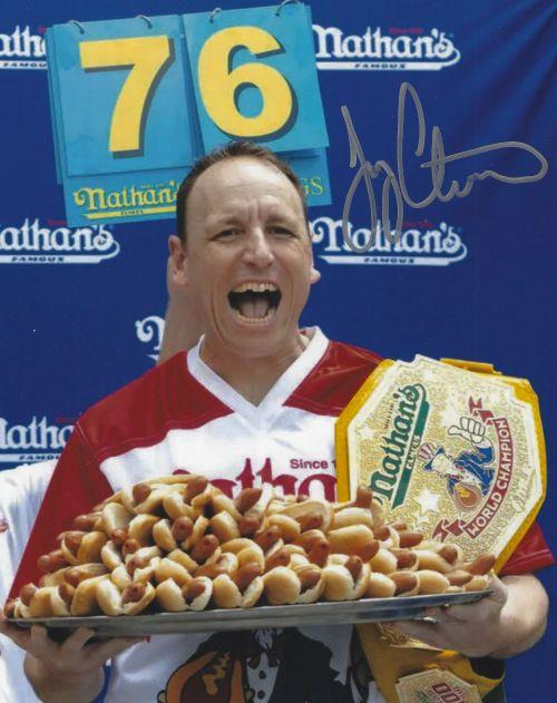 Joey Chestnut (Professional Eating Champion) autographed 8x10 photo. All autographs are 100% guaranteed and come with a certificate of authenticity from www.RKSportsPromotions.com.