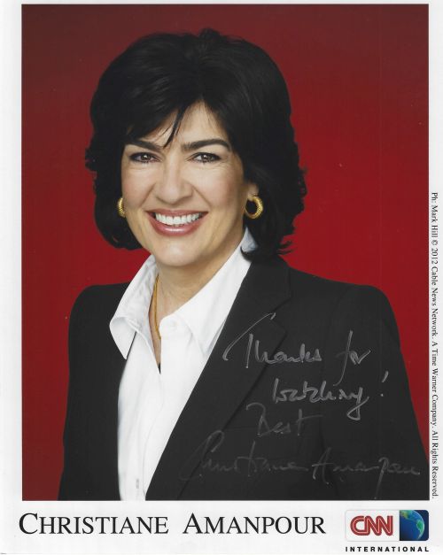Christiane Amanpour autographed 8x10 photo. All autographs are 100% guaranteed and come with a certificate of authenticity from www.RKSportsPromotions.com.