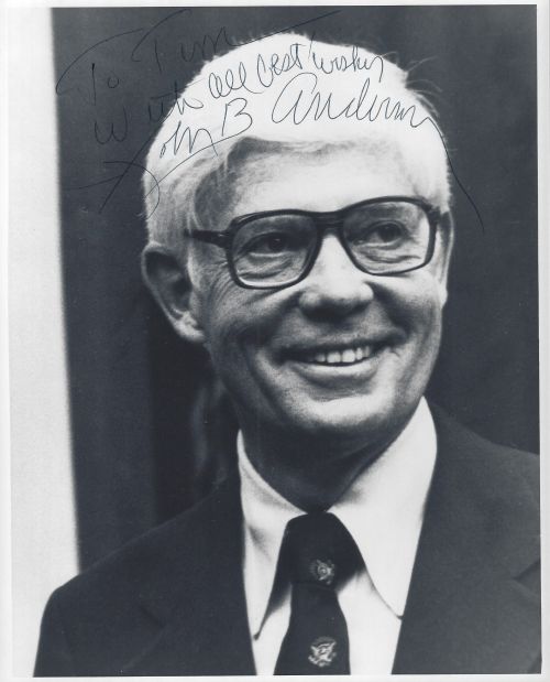John B. Anderson (Illinois Congress) autographed 8x10 photo. Top left corner has bends. All autographs are 100% guaranteed and come with a certificate of authenticity from www.RKSportsPromotions.com.