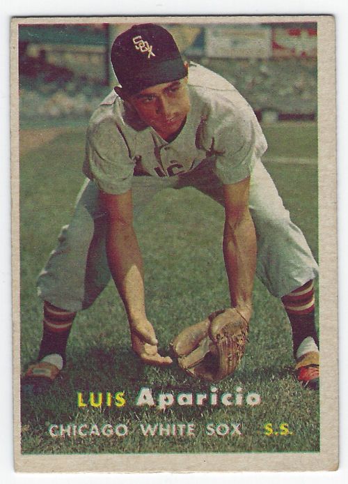 1957 Topps #7 Luis Aparicio (Chicago White Sox) in ex condition.