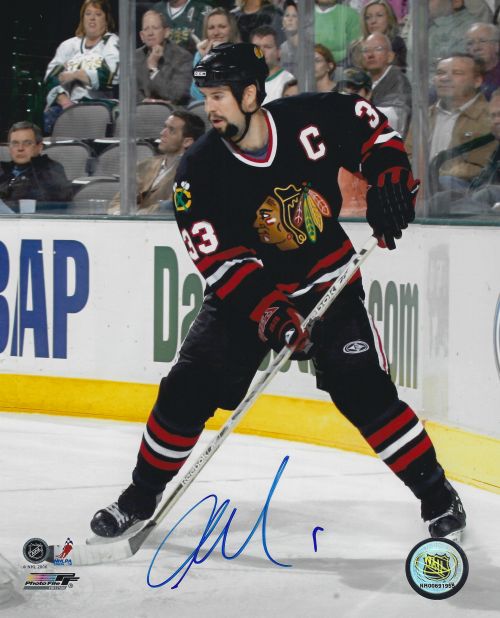 Adrian Aucoin (Chicago Blackhawks) autographed 8x10 photo. All autographs are 100% guaranteed and come with a certificate of authenticity from www.RKSportsPromotions.com.