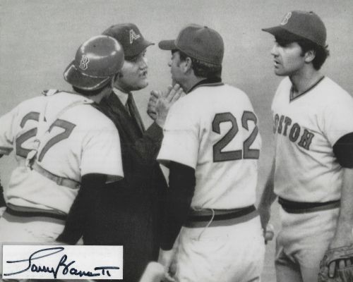 Larry Barnett (Umpire) autographed cut on an 8x10 photo. The photo and signature cut have been professionally laminated together to protect and preserve their quality and condition. By placing this authentic signature cut on the photo, it has significantly increased it's value and desirability! No more looking at a boring index card or piece of paper. Photo is in MINT condition. Please enlarge the photo to view it's resolution since some photos may be of lower resolution. All autographs are 100% guaranteed and come with a certificate of authenticity from www.RKSportsPromotions.com.