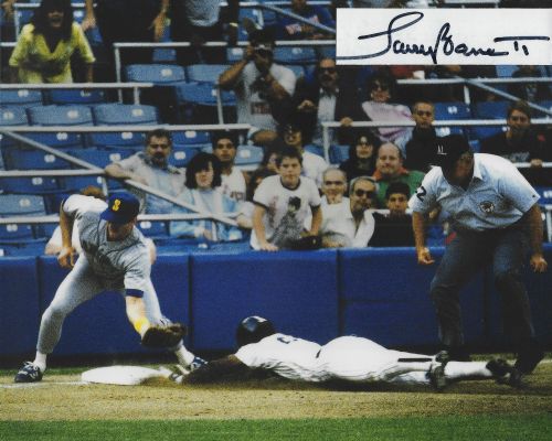 Larry Barnett (Umpire) autographed cut on an 8x10 photo. The photo and signature cut have been professionally laminated together to protect and preserve their quality and condition. By placing this authentic signature cut on the photo, it has significantly increased it's value and desirability! No more looking at a boring index card or piece of paper. Photo is in MINT condition. Please enlarge the photo to view it's resolution since some photos may be of lower resolution. All autographs are 100% guaranteed and come with a certificate of authenticity from www.RKSportsPromotions.com.
