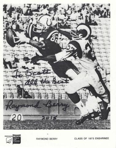 Raymond Berry (Baltimore Colts - Hall Of Fame) autographed 8x10 photo. Photo is on thick paper stock. All autographs are 100% guaranteed and come with a certificate of authenticity from www.RKSportsPromotions.com.