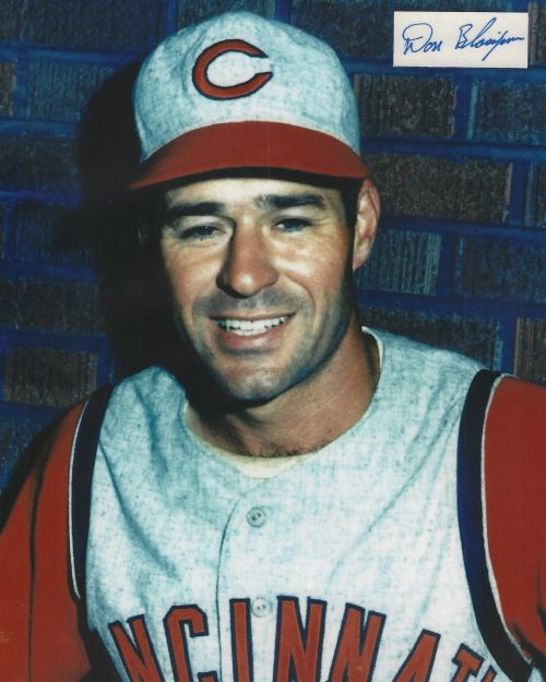 Don Blasingame (Cincinnati Reds) autographed cut on an 8x10 photo. The photo and signature cut have been professionally laminated together to protect and preserve their quality and condition. By placing this authentic signature cut on the photo, it has significantly increased it's value and desirability! No more looking at a boring index card or piece of paper. Photo is in MINT condition. Please enlarge the photo to view it's resolution since some photos may be of lower resolution. All autographs are 100% guaranteed and come with a certificate of authenticity from www.RKSportsPromotions.com.