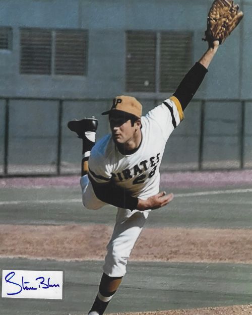 Steve Blass (Pittsburgh Pirates) autographed cut on an 8x10 photo. The photo and signature cut have been professionally laminated together to protect and preserve their quality and condition. By placing this authentic signature cut on the photo, it has significantly increased it's value and desirability! No more looking at a boring index card or piece of paper. Photo is in MINT condition. Please enlarge the photo to view it's resolution since some photos may be of lower resolution. All autographs are 100% guaranteed and come with a certificate of authenticity from www.RKSportsPromotions.com.