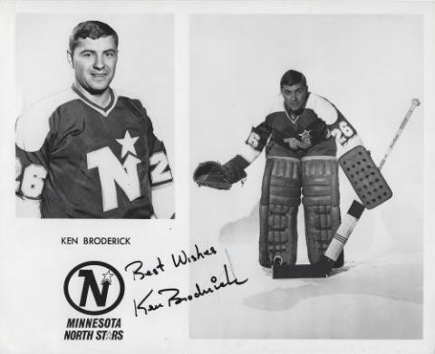 EXTREMELY RARE AUTHENTIC HAND SIGNED Ken Broderick autographed 8x10 Minnesota North Stars ORIGINAL PRESS photo. Please note: Most of the vintage press photos that we are offering on our website are in great condition. Most are from the 1960's and 1970's. Some photos may have bends, corner wear and in a few cases creases. These are still highly collectible and virtually impossible to find. Many have the press photo year written on the back. All autographs are 100% guaranteed and come with a certificate of authenticity from www.RKSportsPromotions.com.