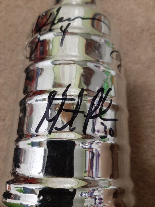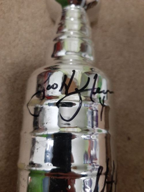 Martin Brodeur/Scott Stevens/Jim Dowd autographed mini stanley cup. The cup appears to have something stuck on it at the Stevens signature. All autographs are 100% guaranteed and this item comes with a certificate of authenticity from Certified Authentication Service (CAS).