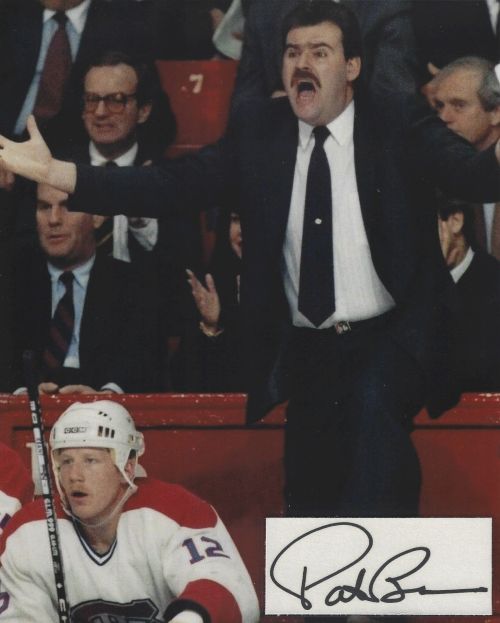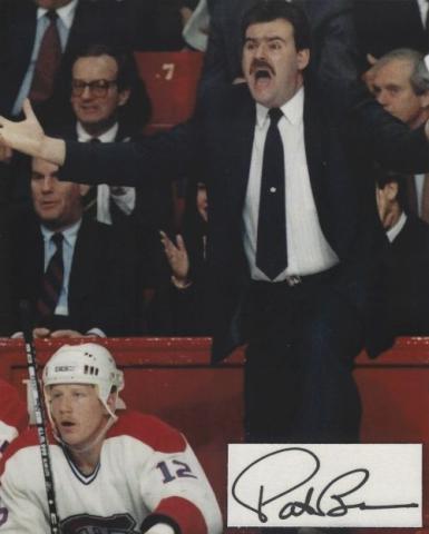 Pat Burns (Montreal Canadiens) autographed cut on an 8x10 photo. The photo and signature cut have been professionally laminated together to protect and preserve their quality and condition. By placing this authentic signature cut on the photo, it has significantly increased it's value and desirability! No more looking at a boring index card or piece of paper. Photo is in MINT condition. Please enlarge the photo to view it's resolution since some photos may be of lower resolution. All autographs are 100% guaranteed and come with a certificate of authenticity from www.RKSportsPromotions.com.