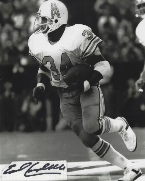 Earl Campbell (Houston Oilers - Hall Of Fame) autographed cut on an 8x10 photo. The photo and signature cut have been professionally laminated together to protect and preserve their quality and condition. By placing this authentic signature cut on the photo, it has significantly increased it's value and desirability! No more looking at a boring index card or piece of paper. Photo is in MINT condition. Please enlarge the photo to view it's resolution since some photos may be of lower resolution. All autographs are 100% guaranteed and come with a certificate of authenticity from www.RKSportsPromotions.com.