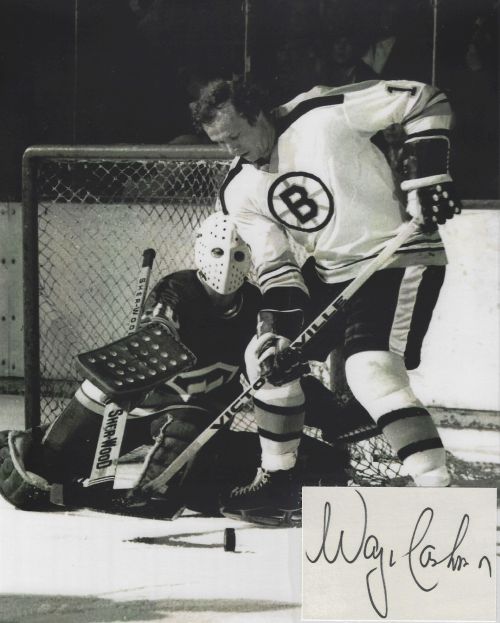 Wayne Cashman (Boston Bruins) autographed cut on an 8x10 photo. The photo and signature cut have been professionally laminated together to protect and preserve their quality and condition. By placing this authentic signature cut on the photo, it has significantly increased it's value and desirability! No more looking at a boring index card or piece of paper. Photo is in MINT condition. Please enlarge the photo to view it's resolution since some photos may be of lower resolution. All autographs are 100% guaranteed and come with a certificate of authenticity from www.RKSportsPromotions.com.