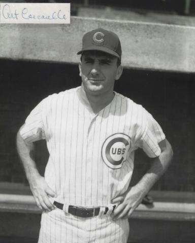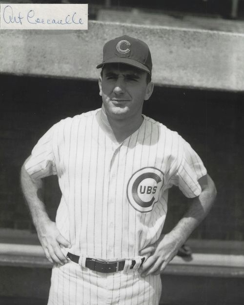 Art Ceccarelli (Chicago Cubs) autographed cut on an 8x10 photo. The photo and signature cut have been professionally laminated together to protect and preserve their quality and condition. By placing this authentic signature cut on the photo, it has significantly increased it's value and desirability! No more looking at a boring index card or piece of paper. Photo is in MINT condition. Please enlarge the photo to view it's resolution since some photos may be of lower resolution. All autographs are 100% guaranteed and come with a certificate of authenticity from www.RKSportsPromotions.com.