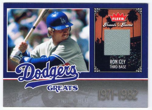 2006 Greats Of The Game Dodger Greats Memorabilia #LAD-RC Ron Cey Game Used Jersey (Los Angeles Dodgers) in mint condition.