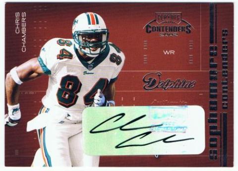 2002 Playoff Contenders Sophomore Contenders #SC-2 Chris Chambers Autograph (Miami Dolphins) #21/28 in mint condition.