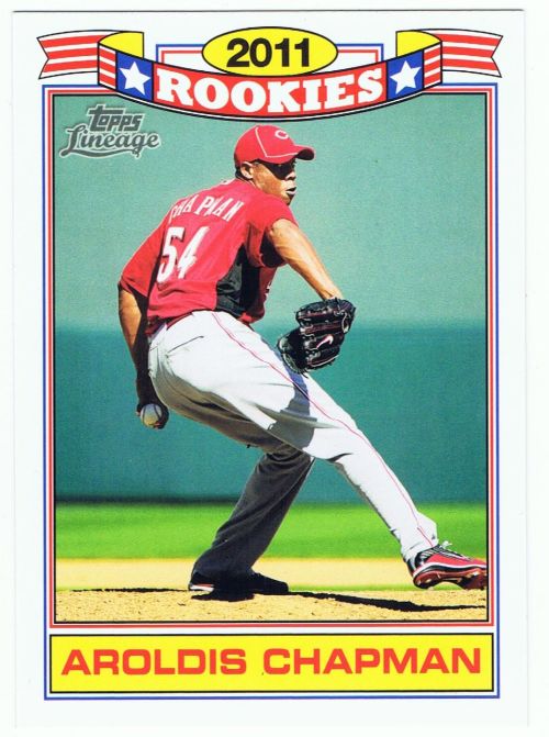 2011 Topps Lineage Rookies #4 Aroldis Chapman (Cincinnati Reds) in mint condition.