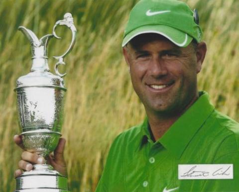 Stewart Cink (Golf) autographed cut on an 8x10 photo. The photo and signature cut have been professionally laminated together to protect and preserve their quality and condition. By placing this authentic signature cut on the photo, it has significantly increased it's value and desirability! No more looking at a boring index card or piece of paper. Photo is in MINT condition. Please enlarge the photo to view it's resolution since some photos may be of lower resolution. All autographs are 100% guaranteed and come with a certificate of authenticity from www.RKSportsPromotions.com.