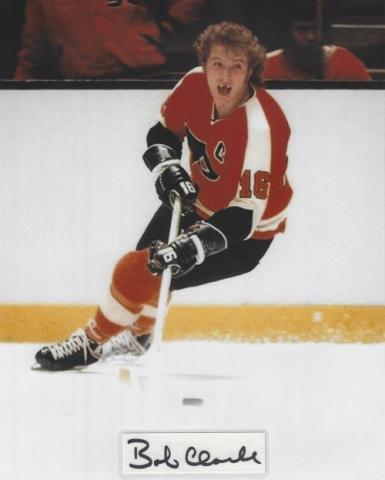 Bobby Clarke (Philadelphia Flyers - Hall Of Fame) autographed cut on an 8x10 photo. The photo and signature cut have been professionally laminated together to protect and preserve their quality and condition. By placing this authentic signature cut on the photo, it has significantly increased it's value and desirability! No more looking at a boring index card or piece of paper. Photo is in MINT condition. Please enlarge the photo to view it's resolution since some photos may be of lower resolution. All autographs are 100% guaranteed and come with a certificate of authenticity from www.RKSportsPromotions.com.