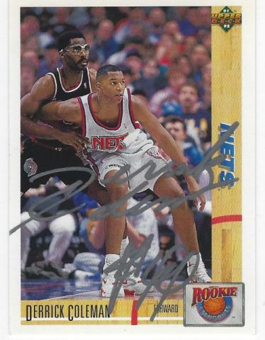 Derrick Coleman (NJ Nets) autographed 1991-92 Upper Deck card. All autographs are 100% guaranteed and come with a certificate of authenticity from www.RKSportsPromotions.com.