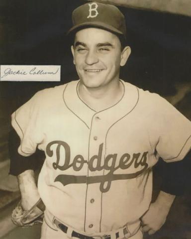 Jackie Collum (Brooklyn Dodgers) autographed cut on an 8x10 photo. The photo and signature cut have been professionally laminated together to protect and preserve their quality and condition. By placing this authentic signature cut on the photo, it has significantly increased it's value and desirability! No more looking at a boring index card or piece of paper. Photo is in MINT condition. Please enlarge the photo to view it's resolution since some photos may be of lower resolution. All autographs are 100% guaranteed and come with a certificate of authenticity from www.RKSportsPromotions.com.