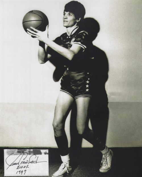 Joan Crawford (Women's Basketball - Hall Of Fame) autographed cut on an 8x10 photo. The photo and signature cut have been professionally laminated together to protect and preserve their quality and condition. By placing this authentic signature cut on the photo, it has significantly increased it's value and desirability! No more looking at a boring index card or piece of paper. Photo is in MINT condition. Please enlarge the photo to view it's resolution since some photos may be of lower resolution. All autographs are 100% guaranteed and come with a certificate of authenticity from www.RKSportsPromotions.com.
