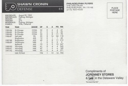 Shawn Cronin (Philadelphia Flyers) autographed 4x6 photo postcard. All autographs are 100% guaranteed and come with a certificate of authenticity from www.RKSportsPromotions.com.