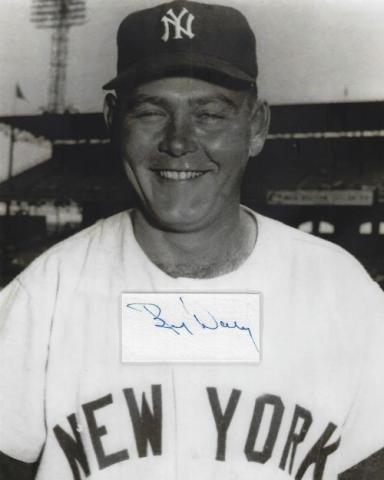 Bud Daley (NY Yankees) autographed cut on an 8x10 photo. The photo and signature cut have been professionally laminated together to protect and preserve their quality and condition. By placing this authentic signature cut on the photo, it has significantly increased it's value and desirability! No more looking at a boring index card or piece of paper. Photo is in MINT condition. Please enlarge the photo to view it's resolution since some photos may be of lower resolution. All autographs are 100% guaranteed and come with a certificate of authenticity from www.RKSportsPromotions.com.