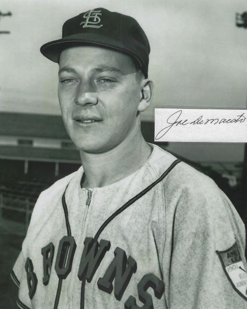 Joe DeMaestri (St. Louis Browns) autographed cut on an 8x10 photo. The photo and signature cut have been professionally laminated together to protect and preserve their quality and condition. By placing this authentic signature cut on the photo, it has significantly increased it's value and desirability! No more looking at a boring index card or piece of paper. Photo is in MINT condition. Please enlarge the photo to view it's resolution since some photos may be of lower resolution. All autographs are 100% guaranteed and come with a certificate of authenticity from www.RKSportsPromotions.com.