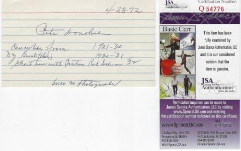 Pete Donohue (Reds - NY Giants - Red Sox) autographed 3x5 index card. All autographs are 100% guaranteed and this item comes with a certificate of authenticity from JSA.