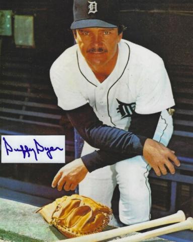 Duffy Dyer (Detroit Tigers) autographed cut on an 8x10 photo. The photo and signature cut have been professionally laminated together to protect and preserve their quality and condition. By placing this authentic signature cut on the photo, it has significantly increased it's value and desirability! No more looking at a boring index card or piece of paper. Photo is in MINT condition. Please enlarge the photo to view it's resolution since some photos may be of lower resolution. All autographs are 100% guaranteed and come with a certificate of authenticity from www.RKSportsPromotions.com.