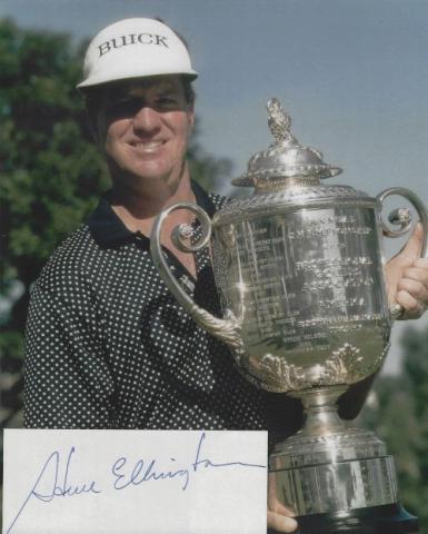 Steve Elkington (Golf) autographed cut on an 8x10 photo. The photo and signature cut have been professionally laminated together to protect and preserve their quality and condition. By placing this authentic signature cut on the photo, it has significantly increased it's value and desirability! No more looking at a boring index card or piece of paper. Photo is in MINT condition. Please enlarge the photo to view it's resolution since some photos may be of lower resolution. All autographs are 100% guaranteed and come with a certificate of authenticity from www.RKSportsPromotions.com.