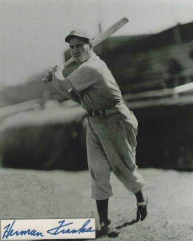 Herman Franks (Brooklyn Dodgers) autographed cut on an 8x10 photo. The photo and signature cut have been professionally laminated together to protect and preserve their quality and condition. By placing this authentic signature cut on the photo, it has significantly increased it's value and desirability! No more looking at a boring index card or piece of paper. Photo is in MINT condition. Please enlarge the photo to view it's resolution since some photos may be of lower resolution. All autographs are 100% guaranteed and come with a certificate of authenticity from www.RKSportsPromotions.com.