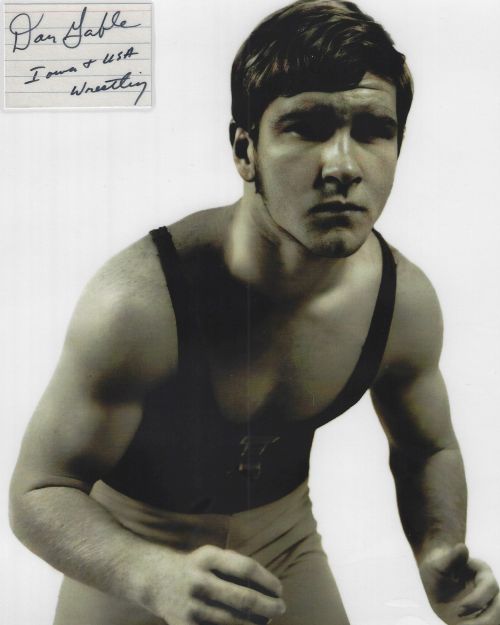 Dan Gable (Olympics - Wrestling) autographed cut on an 8x10 photo. The photo and signature cut have been professionally laminated together to protect and preserve their quality and condition. By placing this authentic signature cut on the photo, it has significantly increased it's value and desirability! No more looking at a boring index card or piece of paper. Photo is in MINT condition. Please enlarge the photo to view it's resolution since some photos may be of lower resolution. All autographs are 100% guaranteed and come with a certificate of authenticity from www.RKSportsPromotions.com.