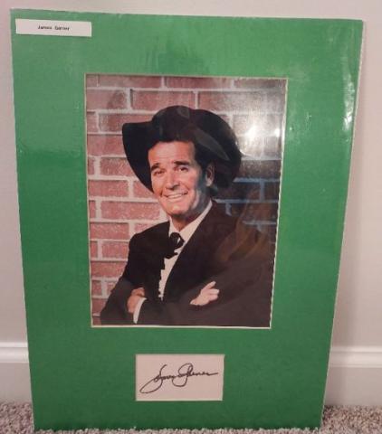 James Garner autographed 12x16 matted display. The photo included is an 8x10 and the signature is on a 3x5 card. All autographs are 100% guaranteed and come with a certificate of authenticity from www.RKSportsPromotions.com.