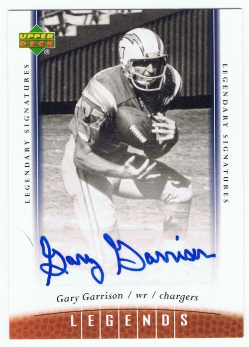 2006 Upper Deck Legends Legendary Signatures #93 Gary Garrison autograph (San Diego Chargers) in mint condition.