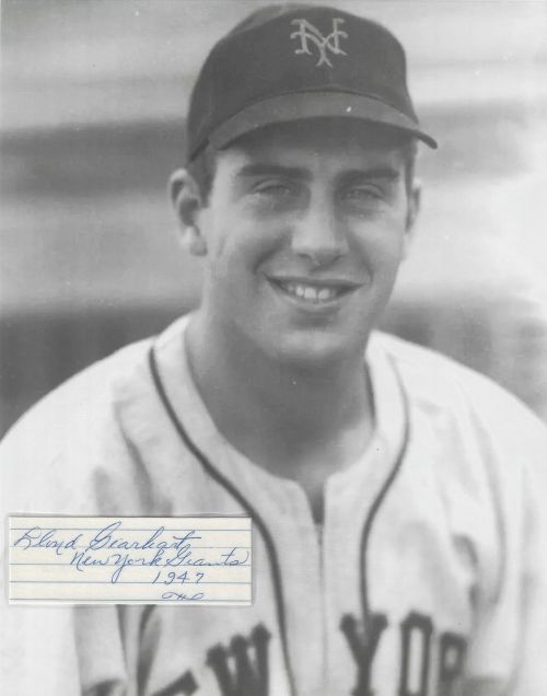 Lloyd 'Gary' Gearhart (NY Giants) autographed cut on an 8x10 photo. The photo and signature cut have been professionally laminated together to protect and preserve their quality, value and condition. By placing this authentic signature cut on the photo, it has significantly increased it's value and desirablity. Photo is in MINT condition. Please enlarge the photo to view it's resolution since some photos may be of lower resolution. All autographs are 100% guaranteed and come with a certificate of authenticity from www.RKSportsPromotions.com.